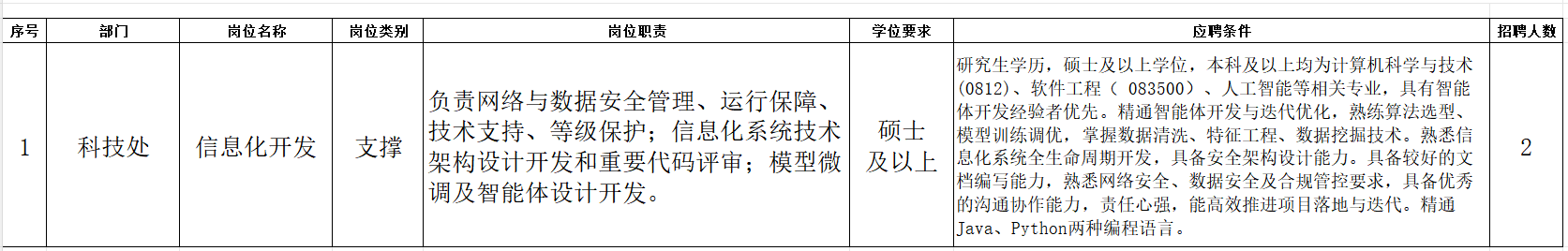 二、招聘岗位